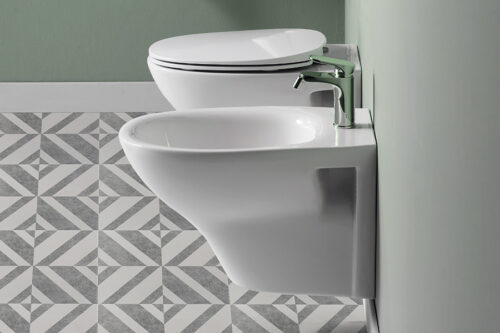 Il vaso e il bidet sospeso Simply: ottimo per spazi ridotti, super igienico grazie al sistema senza Brida e perfetto per ogni tipo di design.
