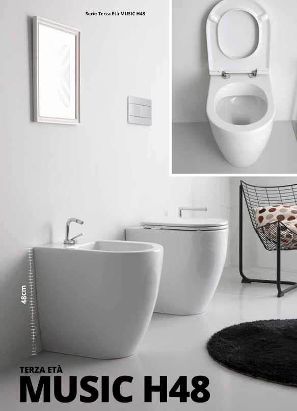 Home » Shop » Sanitari per disabili e ausili anziani » Water per anziani » New* Music Wc filomuro terza età h 48 e copriwc slim