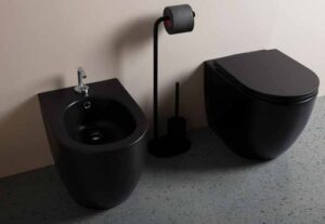 Coppia Vaso senza Brida e Bidet filo muro Music Nero Matt